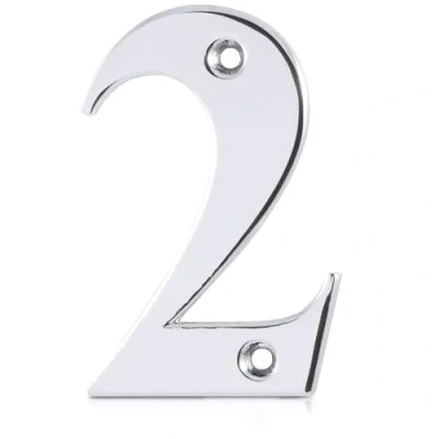 XFORT Polished Chrome Front Door Number 2, House Suitable for All Types Including Wooden, uPVC, and Composite.