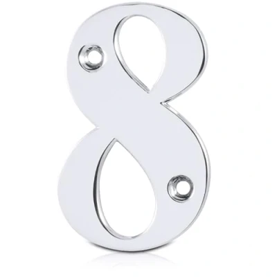 XFORT Polished Chrome Front Door Number 8, House Suitable for All Types Including Wooden, uPVC, and Composite.