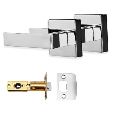 XFORT Quad Passage Knob Set Polished Chrome, Door for Internal Wooden Doors, Complete with Tubular Latch