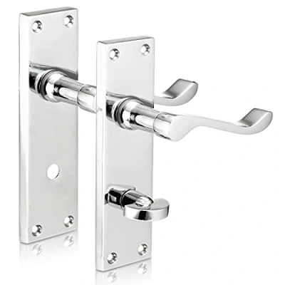 FEATURES: These XFORT bathroom door handles internal are a popular choice, suitable for any bathroom of the house or office. They have a traditional design with a modern touch. The handles automatically return to the horizontal position due to an integrated spring mechanism. The sliding mechanism is fitted with a nylon seal to provide ingress protection. APPLICATION: These handles provide latching for internal doors where privacy locking is required. They are used with a bathroom door lock (not supplied) to allow opening and closing of the doors and a thumb operated locking mechanism. This ensures locking of the door whilst inside the toilet/restroom, preventing unwanted access. They are suitable for all types of indoor bathroom wooden doors. SIZE & FINISH: The finish is pristine polished chrome, which gives a stylish look that will complement any interior décor. The handles are made from zinc and finished with multi layered chrome plating to ensure strength and durability. Please refer to the images for detailed product dimensions. EASY INSTALLATION: Fixing the XFORT bathroom handles merely involves screwing each handle to the sides of the internal door with the fixings supplied. They are ideal for new doors or as re-placement door handles. FIXTURES & FITTINGS: All the necessary fixtures are supplied including the fixing screws and internal handle bar. The mortice bathroom locks (B073HK7Z8B) are not supplied but can be ordered from the Amazon website separately using the code provided. The spindle can be cut to size according to your liking for ease of installation., Manufacturer: Maher London Ltd