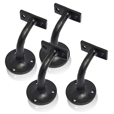 XFORT Smithy's Range Black Antique Handrail Brackets, Traditional Cast Iron Bracket for Stair Bannister Handrail, Complete with Colour Matched Fixing Screws (4 Pack)