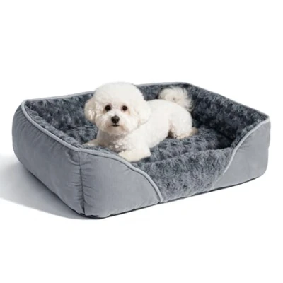 XHDA Small Dog Bed, Fluffy Calming Warming Rectangle Beds, Washable and Non Slip Bottom Pet Grey, 60x45x14cm