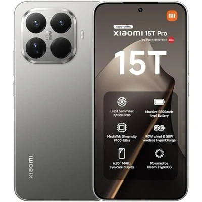 XIAOMI 15T Pro, Smartphone 12 + 512 GB, 6.83 Inch 144 Hz Eye Friendly Display, MediaTek Dimensity 9400+, 50MP Leica 5X Pro Telephoto Lens, 5500 mAh, Titanium