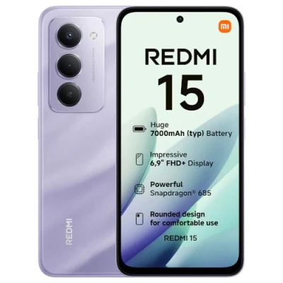 XIAOMI Redmi 15, Smartphone 8+256GB, 6.9" FHD+ 144Hz DotDisplay, Snapdragon 685, 50MP AI dual camera, 7000mAh Battery, Sandy Purple, Charger Not Included