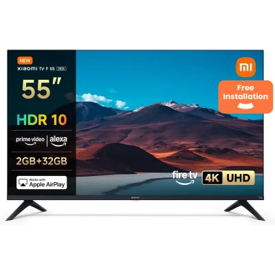 The Xiaomi TV F 55" 4K UHD LED Smart Fire TV features a slim modern design, Fire TV OS, hands-free Alexa, Dolby Audio, Apple AirPlay, and Game Mode, delivering vibrant visuals, immersive sound, and wide connectivity for streaming, gaming, and entertainment. Ideal for seamless integration into any smart home.