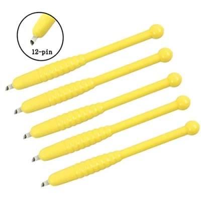 Xiaoyu 5PCS Disposable Manual Microblading Pen Eyebrows Tattoo Blade for Semi permanent Makeup, F12 Needles, Yellow