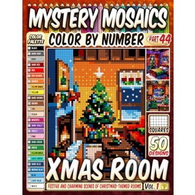 Xmas Decorated Room Mystery Mosaic Color by Number: 50 Festive and Charming Scenes of Christmas Themed Rooms in Pixel Style (Christmas Coloring)