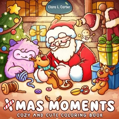 Xmas Moments: Holiday Coloring Book For Teens and Adults featuring Cozy Christmas Cuddly Winter Moments with Adorable Fuzzy Friends Stress Relief