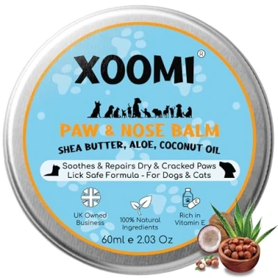 XOOMI Paw & Nose Balm for Dogs Cats Large 60ml Size Soothes Cracked Paws Dry Noses Lick Safe, 100% Natural Ingredients: Aloe, Shea Butter Coconut Oil Non Greasy Moisturising