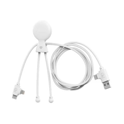Xoopar Multi USB 3 in 1 C, USB, Lightning Cable Mr Bio Long m Recycled Plastic Quick Charge Universal Charger for iPhone, Samsung, Xiaomi, Huawei, Wiko, LG White