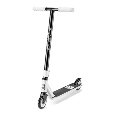 Xootz Invert Stunt Scooter, Adult and Kids Kick Lightweight 360 Degree Stunts, Beginner Intermediate Level Steel T Bar Grip Tape Deck, 6+, White