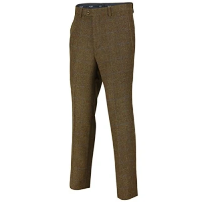 Xposed Men’s Tweed Check Trousers Retro 1920s Vintage Styled Herringbone Tailored Fit Suit Pants [TRS VITORI A1 BROWN 42]