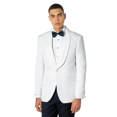 Xposed Men’s White Tuxedo Suit Jacket Damask Flocked Jacquard Print Blazer [Tux Henry White, UK/US 46 EU 56]
