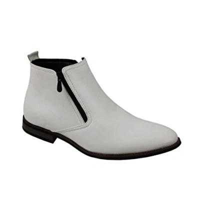 Xposed Mens Chelsea Boots Retro Classic Low Ankle 2 Zip Smart Casual Shoes UK Sizes[A1972H,White,UK 7 EU 41]
