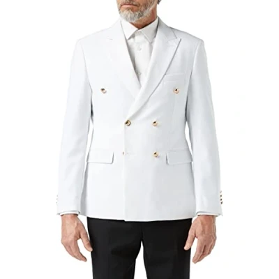 Xposed Mens Classic Slim Fit Double Breasted Blazer Gold Buttons Vintage Jacket White [White,Chest UK 44 EU 54]