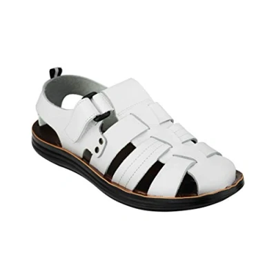 Xposed Mens Leather Cross Strap Sandals Jesus Style Summer Holiday Beach Walking Mules[SANDAL 2201,45,White]