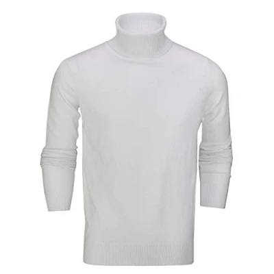 Xposed Mens Roll Neck Jumper Soft Cotton Fine Knitted High Turtle Polo Pullover Top[JUMPER G1808,XL,White]