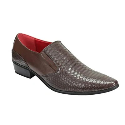 Xposed Mens Snakeskin Emboss Leather Loafers Retro Pointy Cuban Heel Slip on Dress Party Shoes[A2588H,8UK,Coffee]