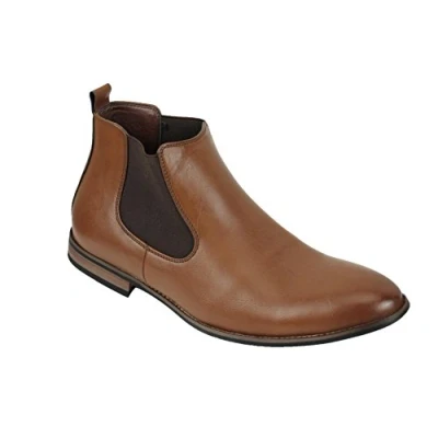 Xposed New Mens Leather Italia Style Vintage Chelsea Boots Casual Dealer Shoes UK Size [UK 6.5 EU 40,Brown PU Leather]