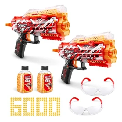 Get Hyped: The XSHOT Hyper Gel Stinger can blast Hyper Gel Pellets at 150 feet per second. Manual Prime: The Stinger uses a manual pull to prime mechanism. No batteries needed! 3,000 Hyper Gel Dehydrated Pellets: Just add water to hydrate the Hyper Gel Pellets. These Pellets are non-toxic, eco safe, and don't stain. The stinger blaster has a 250 Pellet capacity. Pack Inclusions: 2x XSHOT Hyper Gel stinger Blaster; 1x Protection Eyewear; 6,000x Hyper Gel Pellets, Manufacturer: ZURU