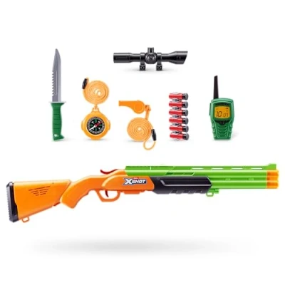 COMPLETE OUTDOOR ADVENTURE KIT – Includes non-firing blaster, scope, 6 ejecting rounds, survival knife, walkie talkie, compass & whistle for immersive play. LIGHTS & SOUNDS FOR IMMERSIVE ACTION: Bring the action to life! With realistic lights and sounds, the Big Hunter kit amps up every mission - just pull the trigger to activate the adventure. REALISTIC SHELL EJECTION – Pump-action reload makes spent shells eject for authentic explorer and role play action. LED BARREL: Light up every game! The barrel flashes with LEDs as you blast, adding epic glow to your backyard missions. PERFECT GIFT FOR ADVENTURERS – Inspires hours of active, screen-free play and creativity; ideal for costumes, cosplay, or gifting., Manufacturer: ZURU