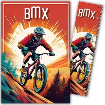 Xtrem 69 1028 Extreme Sports BMX MTB Bike Card with Bookmark/Ruler 15 cm Paper and White Envelope Size 12 x 17.5 Birthday or Party Gift Made in France