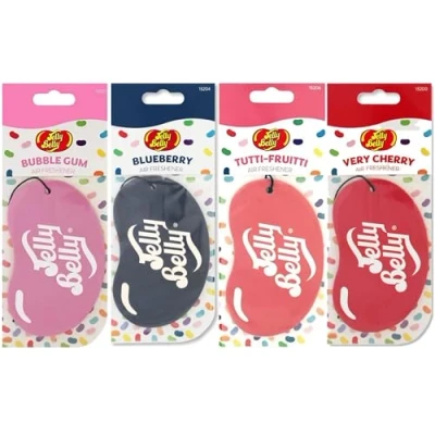 DISCOVER YOUR PERFECT SCENT – Xtremeauto's For Jelly Belly air freshener bundle brings you a fun mix of sweet and fruity fragrances for your car, including Bubblegum, Blueberry, Tutti Fruiti, and Very Cherry. Pick your favourite or switch it up daily for a refreshing, joyful driving experience. LONG-LASTING FRAGRANCE - These 2D cardboard air fresheners are designed to last, providing you with consistent, pleasant scents for your vehicle. Enjoy the delightful aroma every time you step into your car and make every journey more enjoyable. UNMATCHED VARIETY - Our For Jelly Belly air fresheners are perfect for both men and women who appreciate high-quality car accessories. QUALITY YOU CAN TRUST - Made by For Jelly Belly, a brand renowned for its tasty jellybean treats, these car air fresheners are crafted to provide a superior fragrance experience. You can trust that you're getting top-quality scents that will keep your car smelling fantastic. A SCENT FOR EVERY OCCASION - Xtremeauto's For Jelly Belly bundle has you covered. There's a scent for everyone in this collection. Enjoy fresh, inviting air every time you hit the road.
