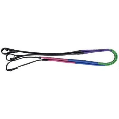 Y H Hy Rubber Covered Training Reins PR 18390 Purple/Green/Blue/Fuchsia 48" x 4/8 18393