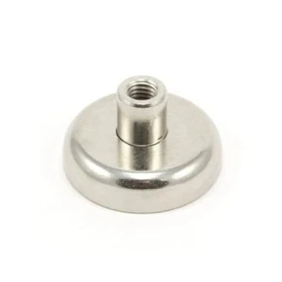 USEFUL FOR MANUFACTURING & ENGINEERING. Neodymium magnets have many uses in engineering and manufacturing where maximum strength is required. IDEAL FOR CREATIVE APPLICATIONS. Our neodymium magnets are commonly used in creative applications such as models and theatre design, furniture making, exhibitions, and packaging. CORROSION-RESISTANT PREMIUM COATING. Each magnet is coated with three layers of nickel, copper, and nickel to improve corrosion resistance and provide a smooth and clean finish. STRONG NEODYMIUM MAGNET. Each magnet can support a steel weight of up to 5.8kg vertically from the magnetic face when in flush contact with a mild steel surface of equal thickness. SPECIFICATIONS. 32mm diameter x 18mm high. M6 threaded stud for fixing.