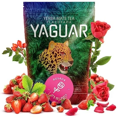 Tempting Rose Yerba Mate: This exquisite yerba mate drink combines the unique essence of rosehip and the sweetness of strawberry tea for a delightful flavoured tea experience. Perfect for both hot and cold consumption as a terere Original Brazilian Yerba Mate: A traditional mate drink, Yaguar Rosada offers a deep flavour and bold aroma, inspired by jaguar power. This yerba+mate blend also qualifies as a fruit tea with strawberry and rosehip The Power of a Healthy Boost: Unlike coffee, yerba mate drink delivers caffeine in a balanced manner, making it an ideal energy tea. Perfect for an energising green drink Rich in Valuable Compounds: This flavoured tea is loaded with vitamins, minerals, and antioxidants, making it a rich tea option. Regular consumption of yerba mate contributes to overall well-being Regulates Metabolism for a Slim Figure: Yerba+mate blend acts as a natural metabolism booster. With a healthy diet and fitness, yerba mate helps in your journey to a healthier, slimmer body