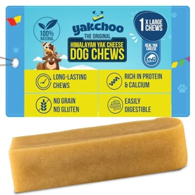 NATURAL & HEALTHY – Yakchoo Himalayan Yak Chews are handcrafted in the Himalayas with only natural ingredients – yak and cow milk, lime juice, and nothing artificial. No preservatives, colors, or harmful additives. DENTAL CARE & ORAL HYGIENE – These long-lasting dog chews help freshen breath, remove plaque & tartar, and strengthen teeth & gums, making them perfect for maintaining your dog’s oral health. TOUGH & LONG-LASTING – Designed for large dogs and aggressive chewers, these yak cheese dog chews have a hard texture that keeps dogs entertained and chewing for hours. GRAIN, GLUTEN & LACTOSE FREE – Our yak cheese dog treats are easily digestible and free from common allergens, making them a great alternative for dogs with sensitivities. NO ODOR, NO MESS – These dog chews are odorless, non-splintering, and won’t create a mess, making them a hassle-free, clean, and convenient treat option. BETTER THAN RAWHIDE – Rawhide-free and made with 100% natural ingredients, Yakchoo Yak Chews provide a safer and healthier chewing experience for your dog.