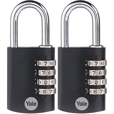 Yale 2 Pack 4 Digit Combination Lock Outdoor Waterproof Padlock for School Gym Locker, Sports Fence, Toolbox, Gate, Case, Hasp Storage (Black)