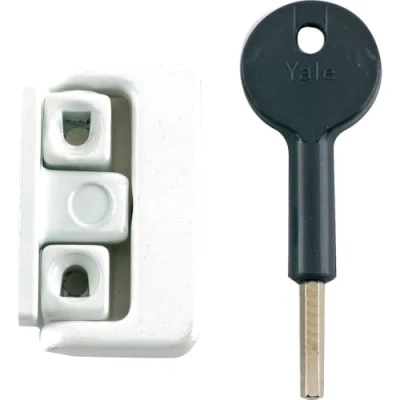General description The Yale 8K101 window latch is a surface-mounted lock designed specifically for hinged timber casement windows. It provides enhanced security by locking around a fixed staple with a key, ensuring that the window is securely closed. The clenching action of the latch pulls the window tightly against the frame, which helps to reduce drafts and improve insulation. Technical specifications Finish: White Dimensions: 52mm x 28mm x 20mm Part Number: V-8K101LK-WE EAN: 5011783001639 Compatibility and accessories Suitable for hinged timber casement windows Designed to be used with the frame fixed staple Installation Surface mounted onto the window section Fitted easily within minutes Secured with a key around the frame staple Usage Lock the latch using the key to secure the window Operate the latch to pull the window tightly against the frame, reducing drafts and increasing security Other information