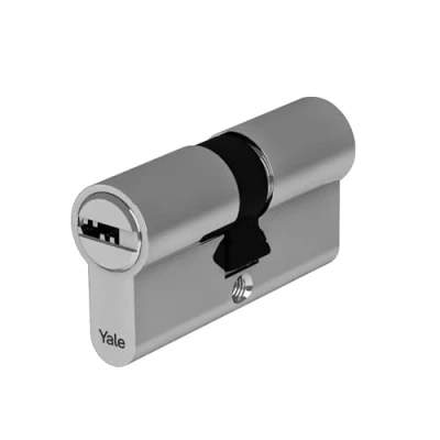 Description: Cylinder with key insertion on both sides, clutched, the inserted key turns even if another key is already inserted on the opposite side of the cylinder Features: Anti-picking design, 6 pin, high level of protection MATERIALS: Brass body with nickel plated finish INCLUDES: 4 reversible keys, property card for duplicating the key and fixing screw Dimensions: 30 mm - 40 mm, Weight: 0.6062712205 Pounds, Manufacturer: Yale
