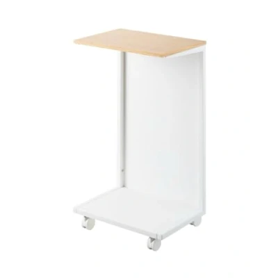 Yamazaki 1415 Tower Semi Closed Side Table with Wheels and Wooden Shelf, White, Steel/Wood/Nylon, Minimalist 31 x 22 55 cm (L W H)