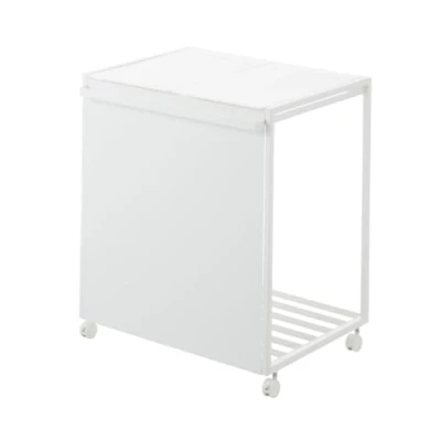 Yamazaki 1820 Tower Bin with 2 Compartments & Wheels, White, Steel/Polypropylene/Nylon, Minimalist 52 x 44 60 cm