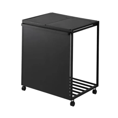 YAMAZAKI 1821 Tower 2 Compartment Trash Can with Casters, Black, Steel/Polypropylene/Nylon, 52 x 44 60 cm