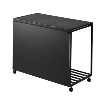 YAMAZAKI 1823 Tower Bin with 3 Compartments & Wheels, Black, Steel/Polypropylene/Nylon, Minimalist 76 x 44 60 cm