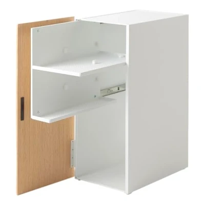 Smart open back design for cooling With two pull-out shelves Weight capacity: 1.5 kg (top floor), 1 kg (bottom bottom) No assembly required Designed in Japan. Natural deviations in the grain are possible