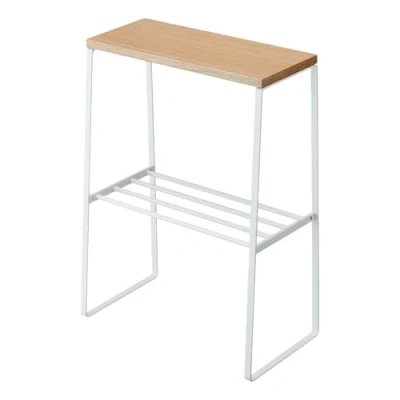 YAMAZAKI 4382 TOSCA Side Table, white, Steel/Wood, Minimalist, 42 x 22 56.5 cm