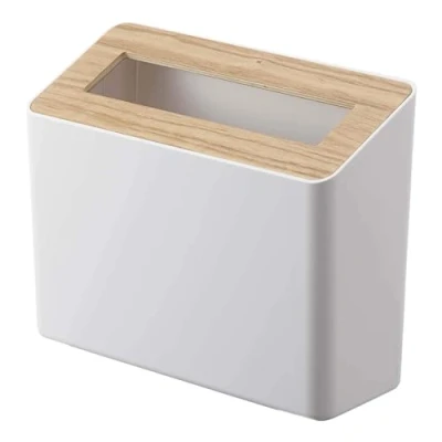 YAMAZAKI 5231 RIN Table Trash Can, white, ABS Resin/Wood, Minimalist, 22 x 9 15.5 cm