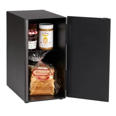 With its horizontal design, this elegant bread bin can also be used to store items on narrower work surfaces, making it a perfect addition to any kitchen. The steel box is equipped with a practical magnetic door. Two internal shelves provide storage space for different ingredients or kitchen utensils. Designed in Japan, Weight: 12.345886672 pounds, Manufacturer: Yamazaki