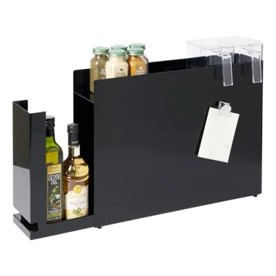 YAMAZAKI 6004 TOWER Sliding Seasoning Rack, black, Steel/Polypropylene, Minimalist, 12.5 x 50~93 36.7 cm