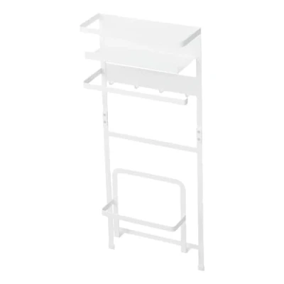 DIMENSIONS AND WEIGHT: This product is 4.33 x 11.02 x 26.38 inches (L x W x H) and weighs 3.53 pounds. MAGNET ORGANIZER: This versatile magnet organizer is the perfect storage solution to store laundry items next to the washing machine. Multiple compartments will allow you to have a spot for everything you need at a moment’s notice. MAGNET: Strong magnet comes pre-applied to the back of the unit. Simply place onto any metal surface. "Wings" on the back of the unit allow the organizer to fit on the curved sections of many dishwashers. MATERIALS: The frame is made from a powder-coated steel. The finish is applied three times, making it water repellant and leaves a smooth finish. The wooden handles are made from ash wood. LOAD-BEARING WEIGHT: Upper shelf supports up to 3.3 pounds. Lower storage area supports up to 8.8 pounds. COLLECTION: The most streamlined of our product collections, Plate features clean, minimal design with a matte paint finish, made to maximize limited space in a contemporary home. BRAND: Inspired by “small-space living” in Japan, Yamazaki creates truly unique, ultramodern products that are mindfully designed to make incremental improvements throughout the home and elevate quality of life. Yamazaki. Home, simplified.