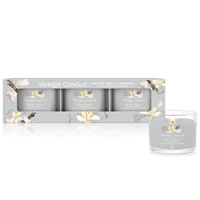 Yankee Candle Scented Candles Gift Set Smoked Vanilla & Cashmere Filled Votive Soy Blend Wax Mix 3 Count