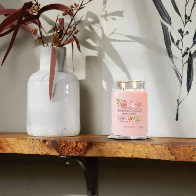 About This Fragrance An intoxicating English garden of fragrant heirloom roses. Fragrance Notes: Fruity Apple Peel, Green Leaf, CitrusRed Rose, GeraniumSoft Powder, MuskAbout Signature Large Jar Candles Experience the Yankee Candle brand, totally reimagined. This refreshing take on the iconic Jar shape is designed to create the best experience to date. This is the largest Jar Candle in the collection at 567g. Two wicks and a premium soy-wax blend provide beautiful ambiance. Hand illustrated labels and vibrant wax colours are perfectly matched with this Signature exclusive and tried-and-true fragrances to create an inspired addition to your home. Burn time up to 90 hours. Height 15cm x Width 9.9cm.