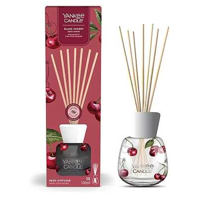 About This Fragrance The absolute delicious sweetness of rich, ripe black cherries.Top - Cherry, AlmondMid - Cherry, CinnamonBase - Sweet Cherry About Reed Diffusers The beautifully styled diffuser showcases hand-illustrated designs to complement any decor and is designed to be enjoyed again and again. Experience on-trend fragrances from our Signature candles as well as tried-and-true favourite scents. All natural rattan reeds diffuse fragrance for up to 10 weeks of scent, expertly crafted with essential oils. The decorative, reusable glass vessel as well as the reed refills come in recyclable packaging, making the this reed diffuser packaging a more environmentally conscious choice for your welcoming home. For added convenience, the new refill bottle and reed refills contain enough fragrance and reeds to reuse the vessel twice. ( sold separately ) For inviting scent and thoughtful decoration, Yankee Candle Signature Reed Diffuser is the perfect finishing touch to any space. Plus, they also make a perfect gift for loved ones. 100ml.