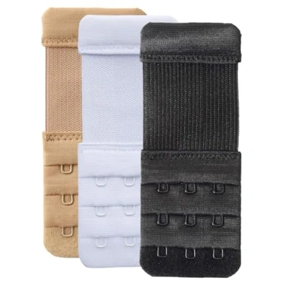 Bra extenders can add more extra breathing room to your bras during pregnancy, breastfeeding, weight gaining, bra shrinkage and more, also fit for new bras which is tight for you Made of nylon material and the metal hook part is made of stainless steel, it is soft and comfortable to wear. ***1/2 inch (12.7mm) hook center spacing (the distance from the center of one hook to center of the next hook). ***SIZE: 3.7inch(Length) x 1.78inch(width) / 94mm(Length) x 45mm (width) Package contents: 3 pieces of 3 hook bra extenders
