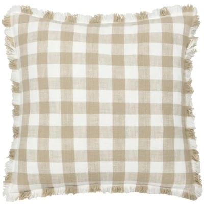 OVERSIZED GINGHAM STYLE: Featuring a bold yarn-dyed gingham pattern that brings instant warmth and simple charm to any room. REVERSIBLE DESIGN: Enjoy two looks in one with a reversible cotton face, perfect for quick styling updates. FRINGED EDGING: Finished with a soft frayed fringe trim for relaxed texture and a cosy lived-in feel. PLUSH POLYESTER FILLING: Comes complete with a lightweight polyester inner for soft, everyday comfort. SUPER-SOFT COTTON: Made from enzyme-washed 100% cotton for a gentle touch and durable, long-lasting quality.