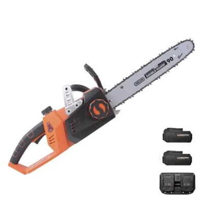 POWERFUL BATTERY SYSTEM: Equipped with dual 20V/4.0Ah lithium-ion batteries delivering combined 40V power for high-performance wood cutting with 120-minute recharge time EFFICIENT CUTTING: Features 35cm bar length and 8.5m/s chain speed for precise and effective cutting, perfect for pruning, logging and firewood tasks MAINTENANCE FEATURES: Includes automatic oiling system and tool-free chain tensioning mechanism for simple setup and ongoing maintenance SAFETY DESIGN: Built-in quick-reaction kick-back brake and protective blade cover for safe operation and storage, plus ergonomic rubber grip handle for comfort WARRANTY COVERAGE: Yard Force provides 2+1 year manufacturer's warranty, offering reliable cordless operation without petrol or emissions, Weight: 13.668660244 Pounds, Manufacturer: Yard Force